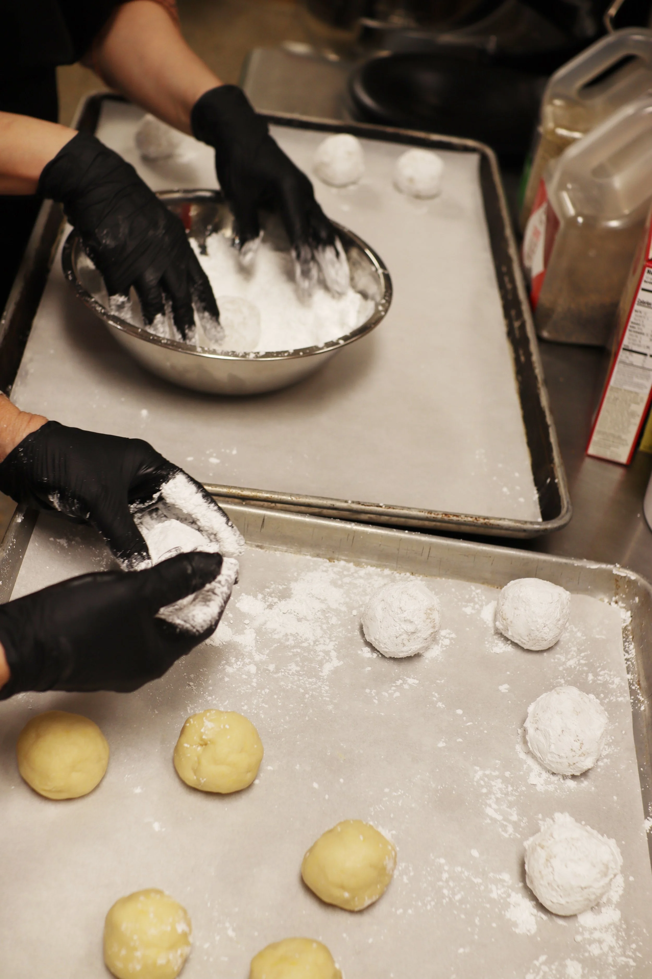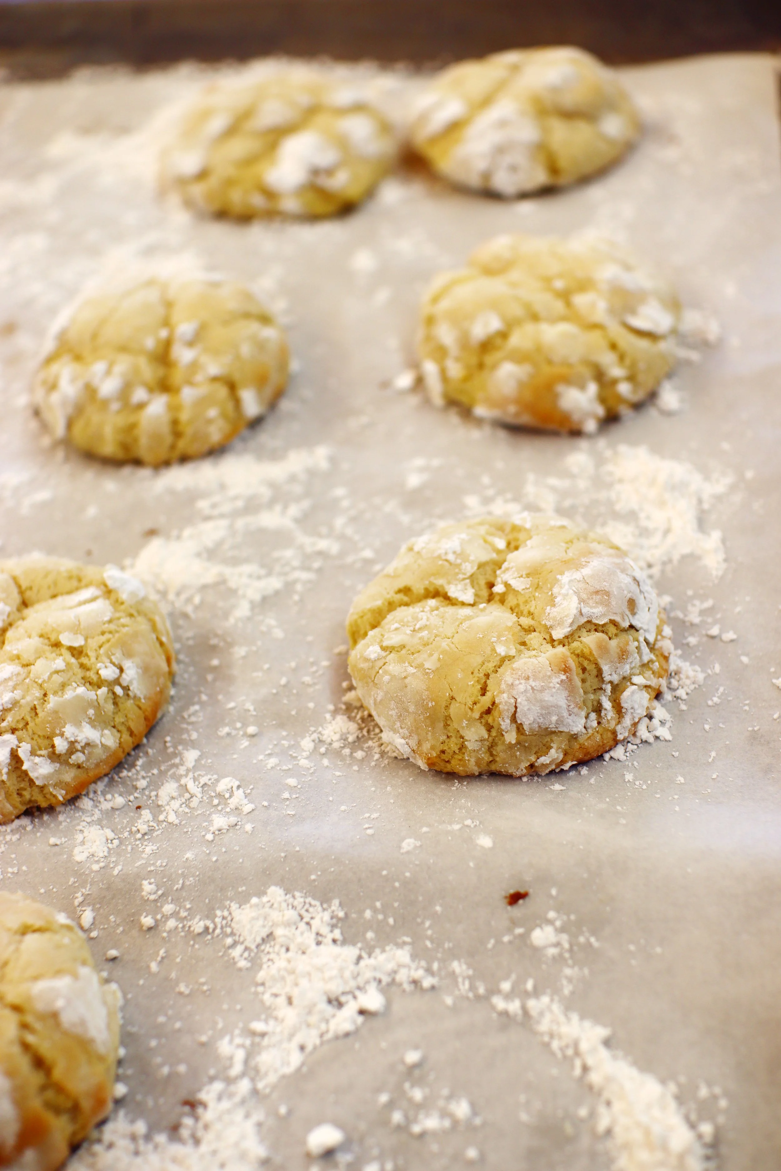 Flour, cornstarch, baking soda, salt, butter, sugar, eggs, lemon juice, vanilla, confectioner’s sugar